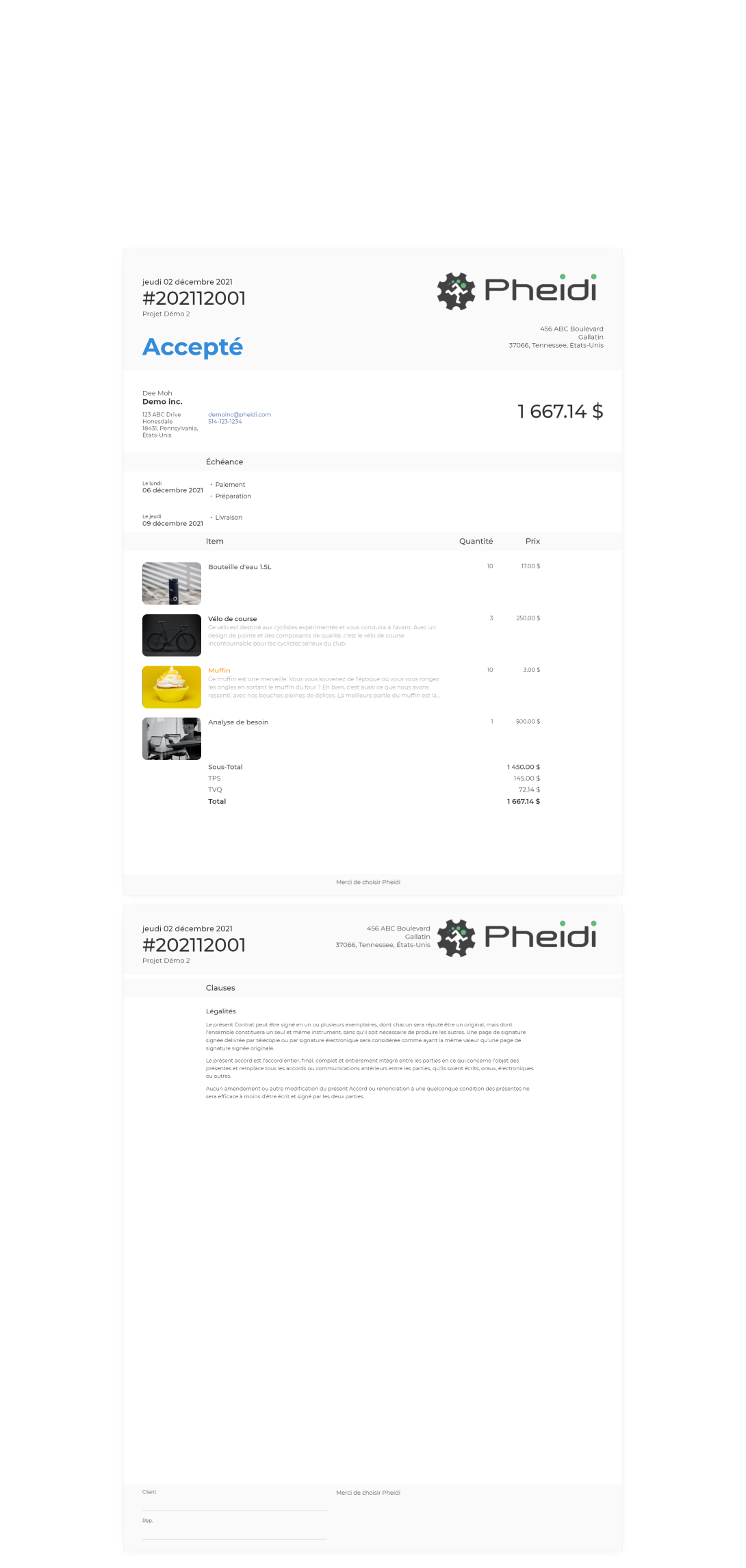 Permet de gérer toutes les facettes de votre entreprise sans vous casser la tête. Nous vous offrons un logiciel simple et rapide afin de vous permettre l'accès n'importe où, n'importe quand. Que ce soit pour la création d'échéanciers, le suivi des clients, la facturation de produits ou bien plus, Pheidi est la solution idéale.